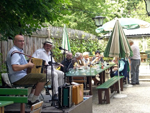 Bei wunderschönem Frühlingswetter fand am Sonntag, den 24. Mai 2009 in unserem Heurigengarten ein Frühschoppen mit den 16er Buam statt. Mit ihren traditionellen Instrumenten, chromatische Schrammel- und diatonische Steirische Harmonika, Kontragitarre und Holzlöffel(!), spielten sie alte Wienerlieder aber auch neue, moderne Kompositionen aus der eigenen Feder - zahlreiche Besucher und ausgelassene Stimmung, die bis in den späten Abend anhielt, machten wieder einmal deutlich - Das Wienerlied lebt! Zu den Fotos...