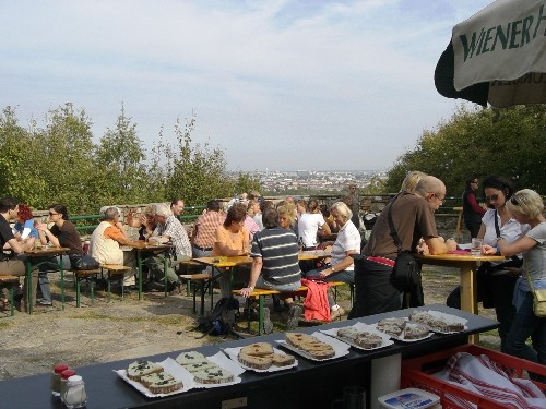 Der Wiener Weinwandertag - am 26. und 27. September - war auch heuer wieder ein voller Erfolg. Bei strahlend schönem Herbstwetter gab es viele fleissige Wanderer, die Teile oder auch die gesamte 12,5 km lange Strecke - von Neustift am Walde über den Cobenzl und Grinzing bis nach Nussdorf - bezwangen. Entlang des Weges konnten sich müde, durstige und hungrige Teilnehmer bei Winzern und Heurigen mit kulinarischen Schmankerln, Wiener Weinen, sowie Sturm und Most stärken. Auch wir vom Heurigen Kierlinger waren mit einer Labestation am Ende des Eichelhofweges vertreten und danken den zahlreichen Freunden und Gästen für Ihren Besuch! Anbei ein paar Eindrücke der Veranstaltung...