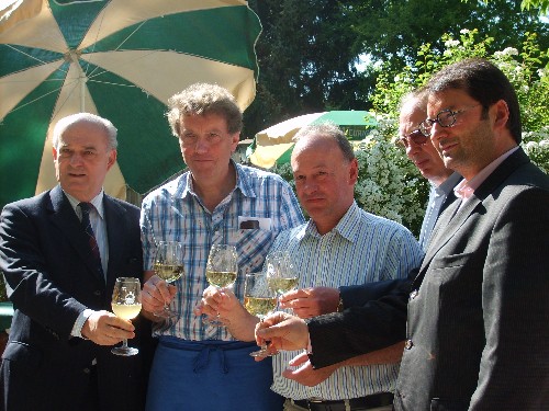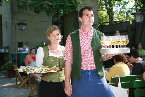 | Am 28. April fand in unserem Gastgarten die offizielle Eröffnung der Wiener Heurigengärten statt, die beiden Stadträte Ulli Sima und Norbert Walter, sowie Bezirksvorsteher Adi Tiller läuteten gemeinsam mit zahlreichen Winzern die Saison ein. Bei strahlend schönem Wetter konnten die Gäste ein frühlingshaftes Programm mit Unterhaltung und Gemütlichkeit genießen. Reben pflanzen und mit nachhause nehmen, eine Wanderung durch den Weingarten, ein Weingartenpicknick mit „Heurigenbschoad“, eine Weinverkostung, ein buntes Kinderprogramm, sowie musikalische Unterhaltung mit den Vienna Schrammeln sorgten für ausgelassene Stimmung. Wir freuen uns auf die Heurigengartensaison 2007! |