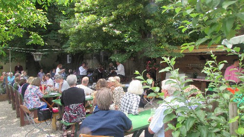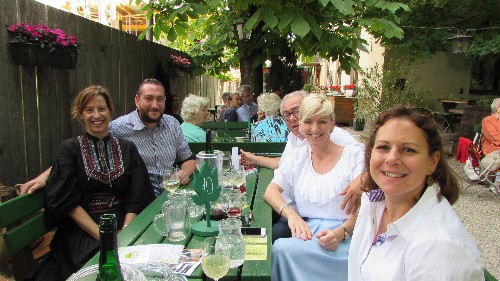 | Am Sonntag, 3. Juni 2018 fand beim Heurigen die 1. Schrammelmatinee unter dem Motto "Gemischter Satz der Wiener Musik in Nussdorf" mit dem Musikquartett Wiener Herzen und Michael Perfler (Gesang) statt. Wir bedanken uns bei allen Gästen und Mitwirkenden für die schönen, vergnüglichen Stunden im Heurigengarten! Anbei ein paar Eindrücke der Veranstaltung... |