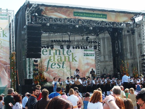 Unter dem Motto "Lust aufs Land" fand am 6. und 7. September 2008 bei strahlendem Sonnenschein das traditionelle Erntedankfest des österr. Bauernstandes am Wiener Heldenplatz statt. Die Besucher konnten frische regionale Produkte der österr. Landwirtschaft verkosten und Wissenswertes darüber erfahren. Auch die Wiener Winzer waren mit einem eigenen Heurigendorf dabei und erfreuten ihre Gäste mit frischem Most und Sturm, sowie verschiedenen erlesenen Weinen und Heurigenschmankerln. Ein interessantes Rahmenprogramm sorgte für Unterhaltung von Groß & Klein. Wir danken allen Gästen, die uns am Kierlingerstand besucht haben!