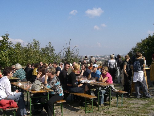 Der Wiener Weinwandertag - am 27. und 28. September - war auch heuer wieder ein voller Erfolg. Bei herrlichem Herbstwetter gab es viele fleissige Wanderer, die Teile oder auch die gesamte 12,5 km lange Strecke - von Neustift am Walde über den Cobenzl und Grinzing bis nach Nussdorf - bezwangen. Entlang des Weges konnten sich müde, durstige und hungrige Teilnehmer bei Winzern und Heurigen mit kulinarischen Schmankerln, Wiener Weinen, sowie Sturm und Most stärken. Auch wir vom Heurigen Kierlinger waren mit einer Labestation am Ende des Eichelhofweges vertreten und danken den zahlreichen Gästen für Ihren Besuch! Anbei ein paar Eindrücke der Veranstaltung...